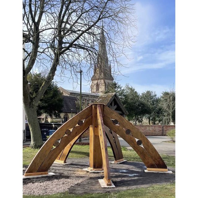 Will Glanfield was commissioned to create this structure in 2005, incorporating a series of artworks designed by the local community. Participants were encouraged to explore local stories and memories which were then converted into designs for wood carvings.
